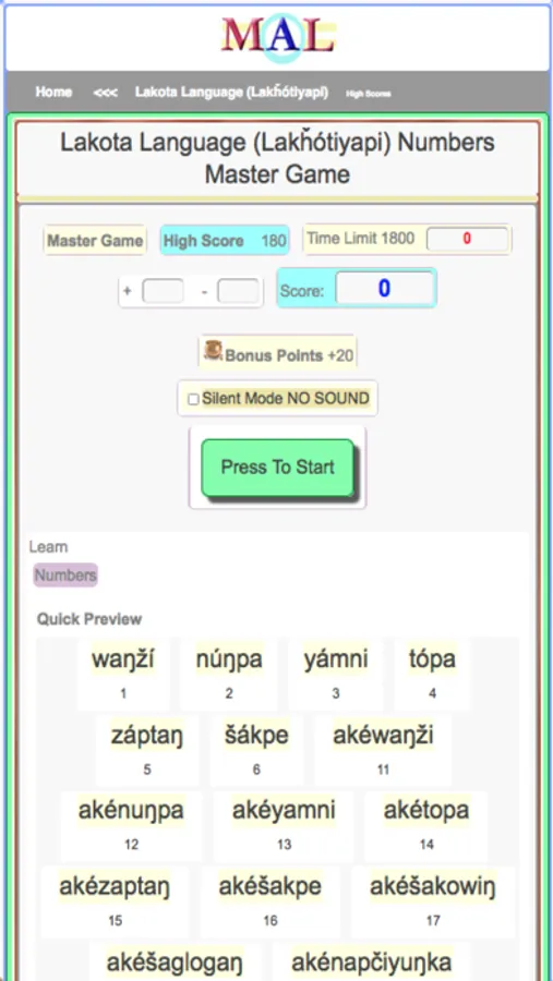 Play Lakota Learning Games, Take Lakota Tests, Study and Learn