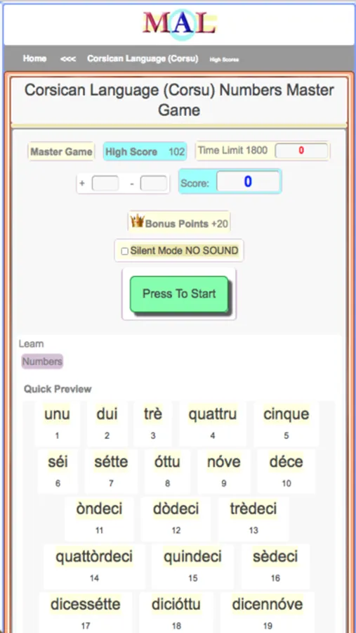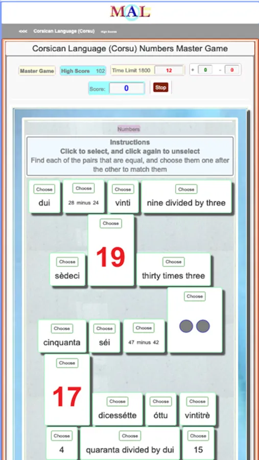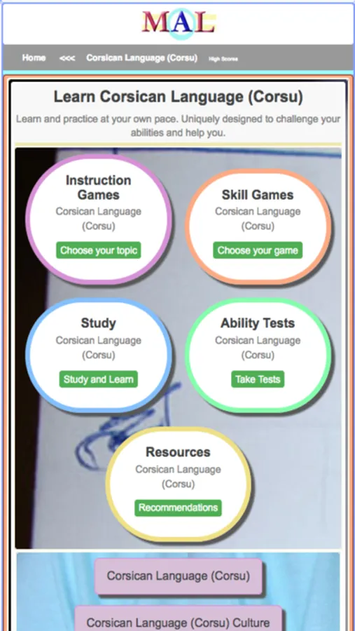 Play Corsican Learning Games, Take Corsican Tests, Study and Learn