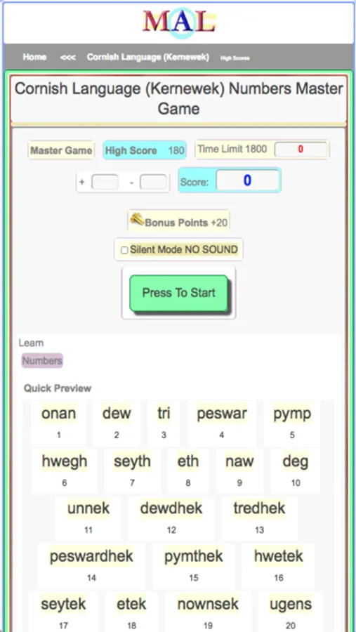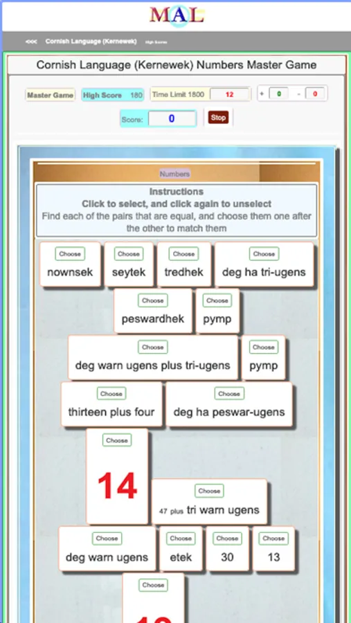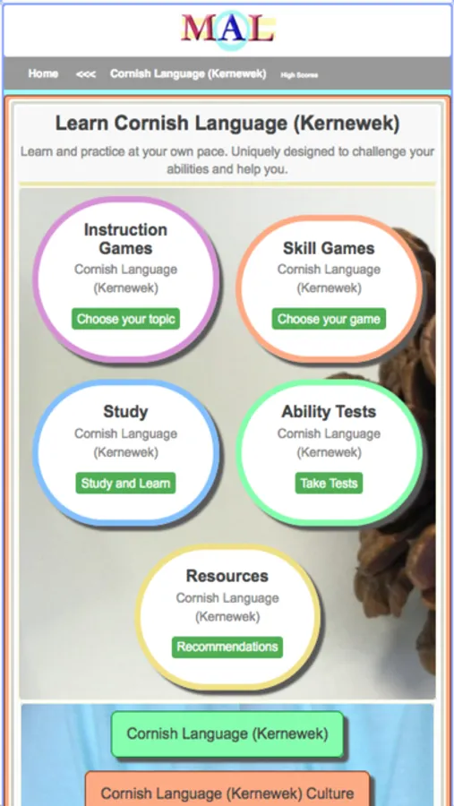 Play Cornish Learning Games, Take Cornish Tests, Study and Learn