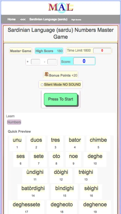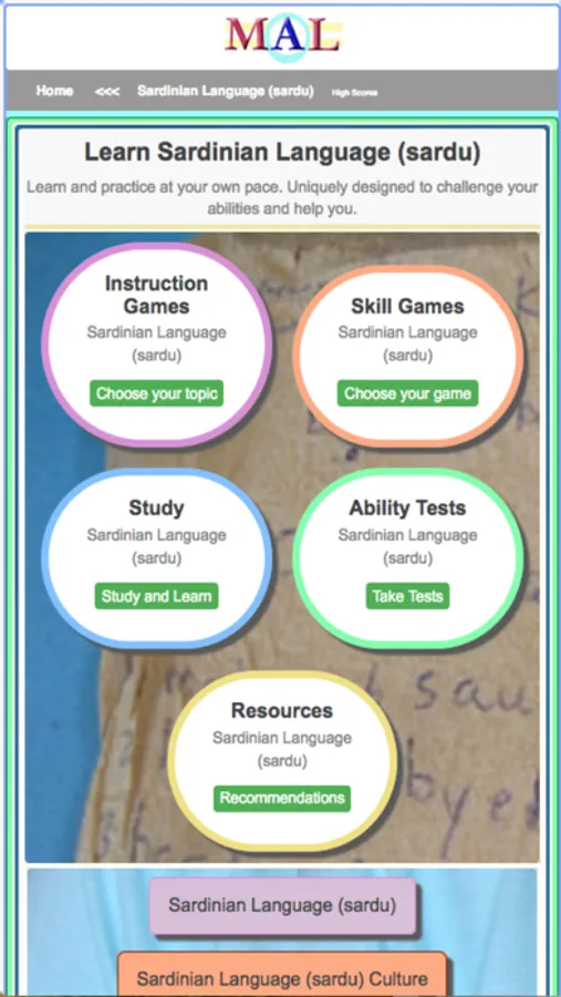 Play Sardinian Learning Games, Take Sardinian Tests, Study and Learn