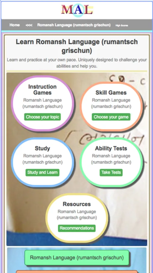 Play Romansh Learning Games, Take Romansh Tests, Study and Learn