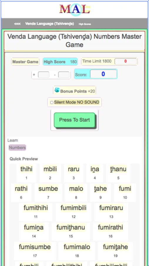 Play Venda Learning Games, Take Venda Tests, Study and Learn