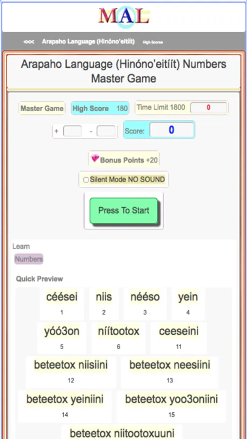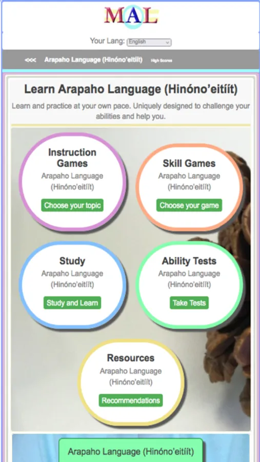 Play Arapaho Learning Games, Take Arapaho Tests, Study and Learn