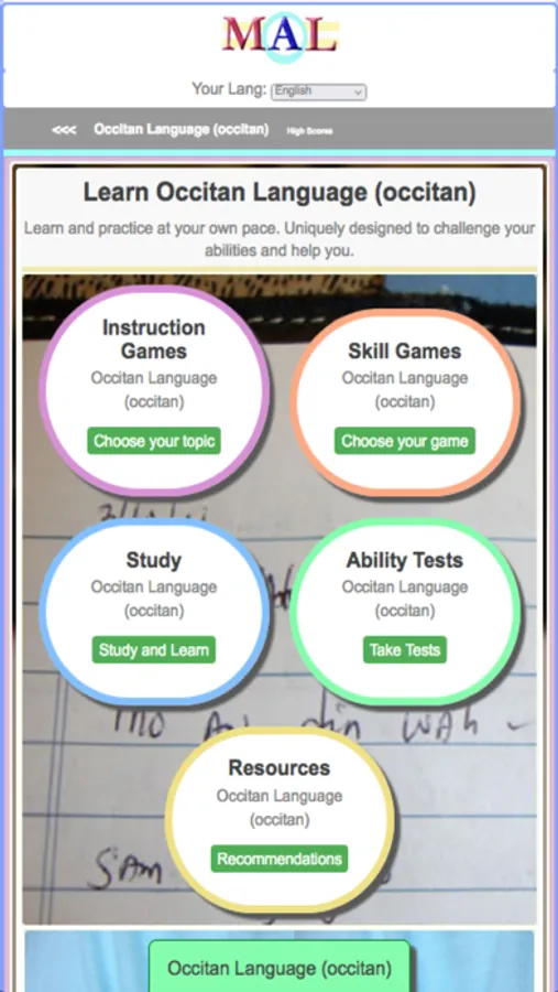 Play Occitan Learning Games, Take Occitan Tests, Study and Learn