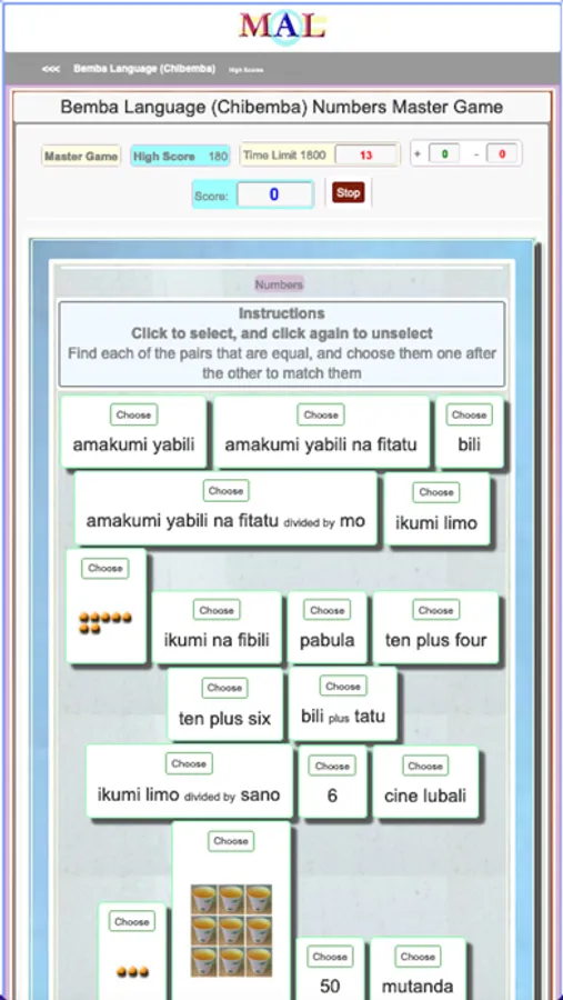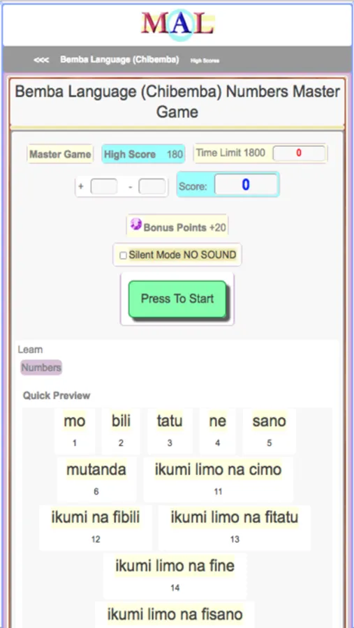 Play Bemba Learning Games, Take Bemba Tests, Study and Learn