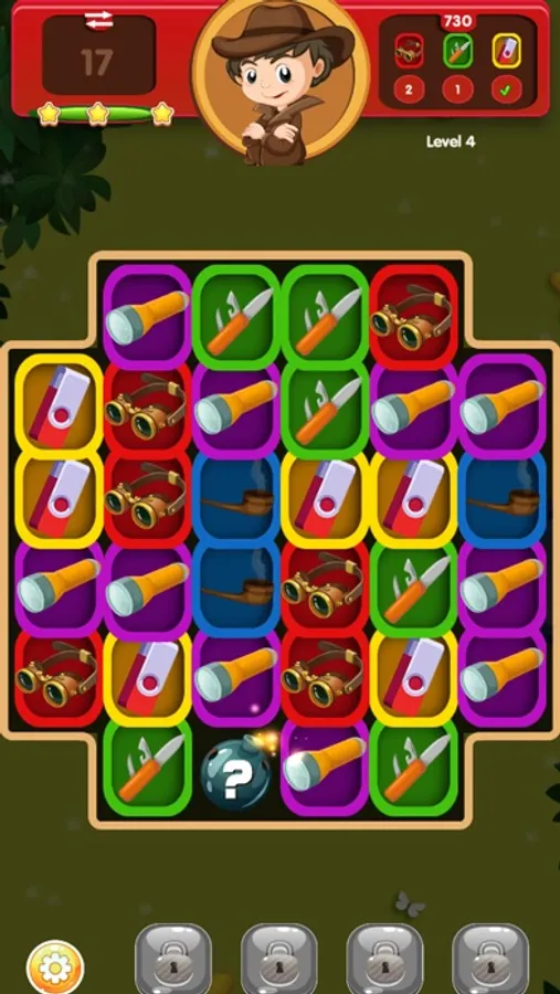 WELCOME to the Adventures of Cooper Castaway! Enjoy this adventure with a list of different amazing unique items. Fan of adventurous puzzle games? Love testing your puzzle-solving skills with hours of block-busting fun? Looking for new exciting brain teasers? Help Special Agent Cooper Castaway solve mysteries and save the world! Let’s take you to the new adventure giving you the chance to crush the different items and unlock new levels. Swipe and match 2 or more same cubes items to complete the mission and clear levels. Wake up your sleepy brains! Endless adventure with different items to match such as watches, binoculars, Bluetooth earplugs, Swiss pocket lock, flash drives, mini scanning device, and much more. Once you match, you can’t stop. The more items you match with a single click, the higher your score will be. Combine more items at a time to trigger a big explosion. Clear all the items from the board. Combine boosters to get the super adventurous effect that will help you to pass your level in less time.