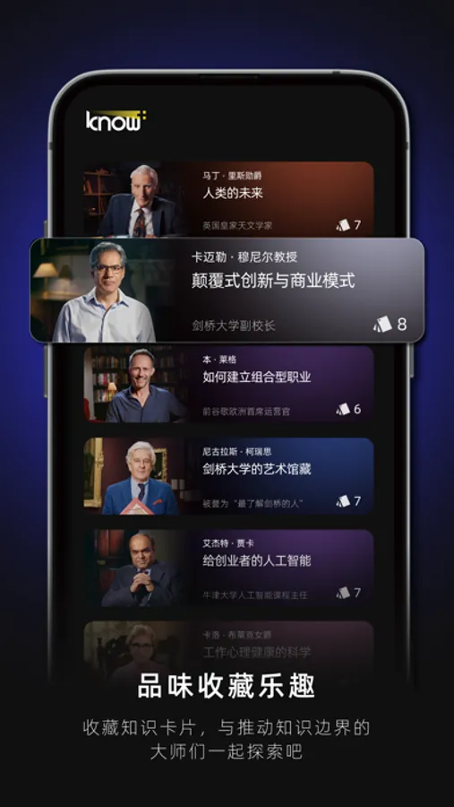 Know+为终身学习者提供知识服务,聚焦科技、商业、教育、艺术领域,为知识内容消费者提供轻量化的知识精华、交互卡片等内容,例如创业创新、人工智能、数据科学、科技趋势、职业发展、设计艺术等