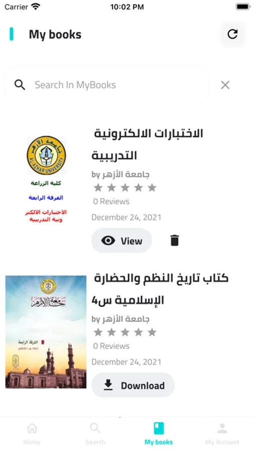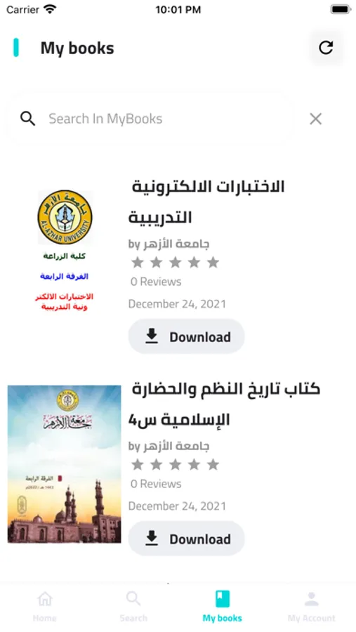 A student at Al-Azhar University can enter the application with the national number and download his books and notes