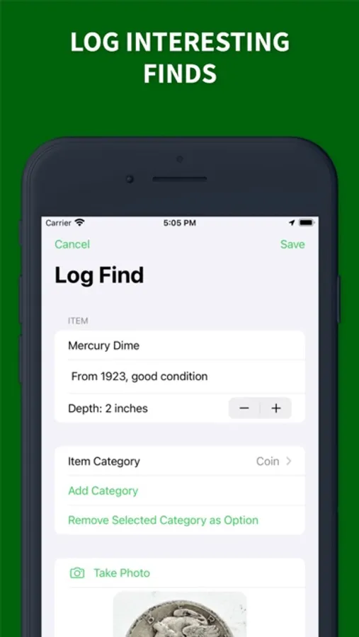 Just bring your device with you on your route to track where you have been. When you find something, log it with the app. Our easy to use interface will make metal detecting an even more enjoyable experience!