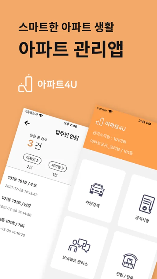 비대면 아파트 관리 솔루션의 선두주자 아파트 4U가 여러분과 함게 합니다.