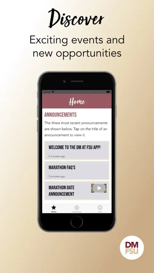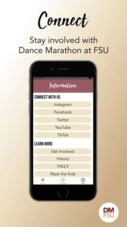 Through our app, dancers, internal members, miracle families, and alumni can stay up to date on everything DM at FSU-related.