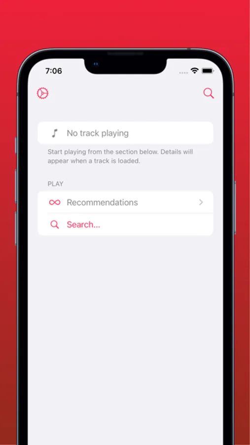You can quickly search for tracks, albums, artists and playlists in your library or in the full catalog and start playing them with a tap, or add them to the queue with a right swipe. You can also explore and play your Recommendations in the same way from the dedicated button.