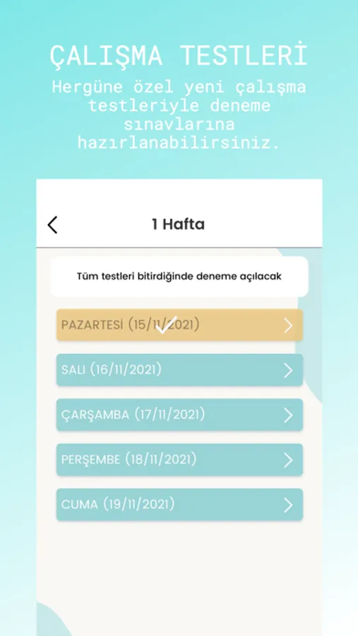 - Her gün çözebileceği 15 sorudan oluşan “Tekrar Testi”