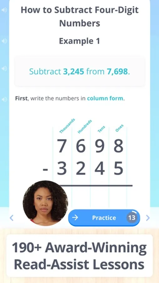 Give your kids everything they need to learn and master essential 4th grade math skills, on their own. Learn Math combines award-winning, read-along lessons with smart adaptive practice to make learning hundreds of 4th grade math skills faster and easier than ever before. Trusted by over 100,000 students, parents, and teachers each month across our web and apps.