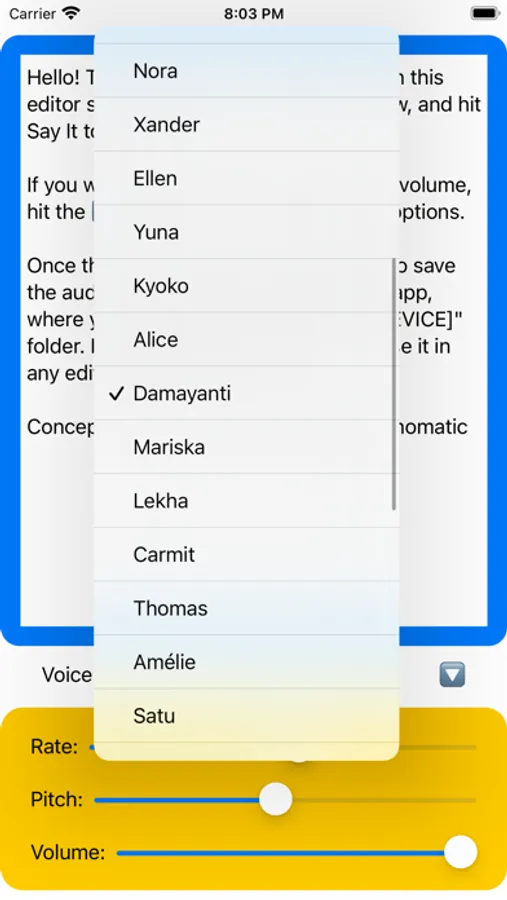You're no longer stuck with the default voices that are built into that clock social network, or the snappy one, or any other. All the iOS voices are right there, ready for you to use.