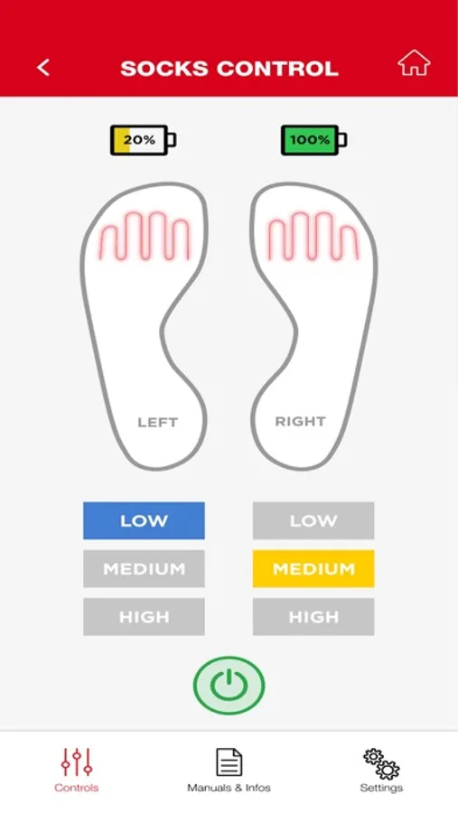 Bluetooth functionality of your mobile device. You will be able to easily control your heated socks since it offers the possibility of 3 heating levels, a standby mode, a clear visual of the battery status, as well as the possibility to customize the name of your batteries