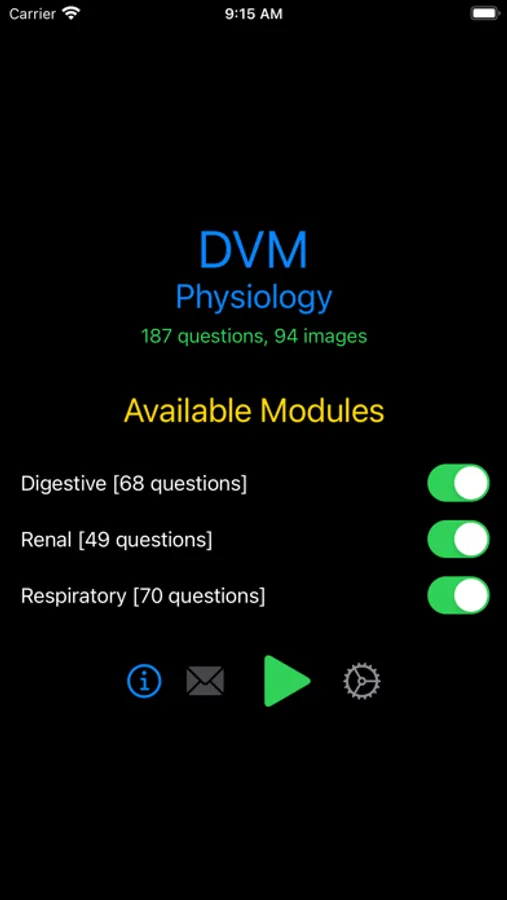 Includes GI basics; ENS; working of key organs; chemical reactions; specie differences; disease states; Respiratory - V/Q; partial pressures; oxyhemoglobin dissociation curve; muscles involved; case studies; respiratory disease states; respiratory control mechanisms; Renal - basic functioning; raas; nephron working; renal disease states; oncotic pressure; specie differences. Lots more.
