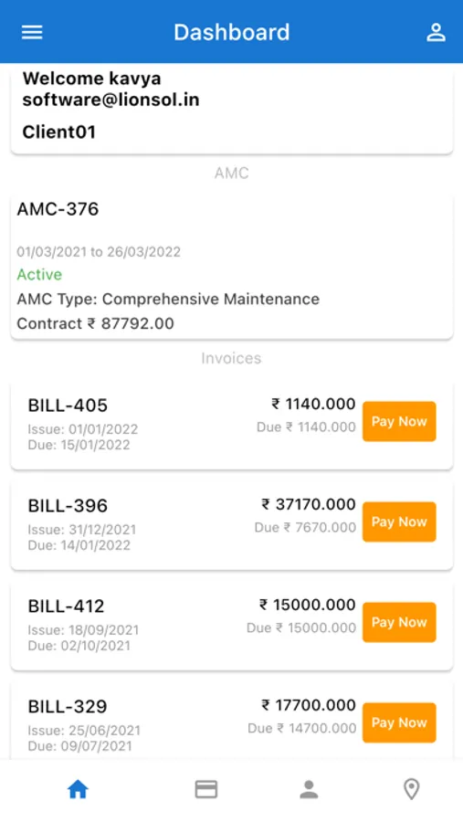 Manage AMC, Payments, Bills, Request Quotations for Elevators. And Create Login accounts.