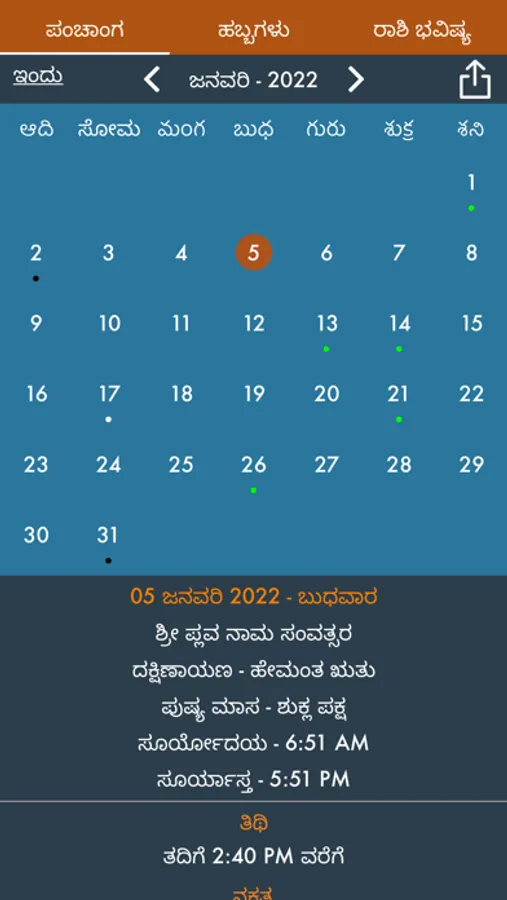 Simple and Useful calendar app with Panchanga and Rashi Bhavishya details for all the Kannada speaking people and Kannadigas around the world.