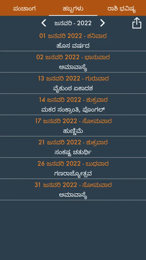 An offline Kannada Calendar app with 2022, 2023 years data providing all the Panchanga and Festival details without connecting to the internet.