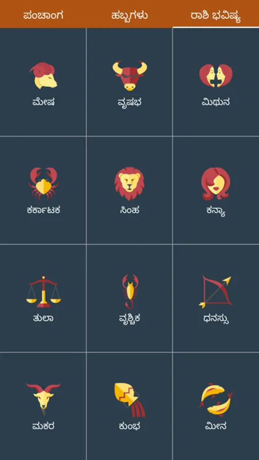 3) Swipe between Panchanga, Festivals and Rashi Bhavishya tabs to view detailed kannada panchanga results or festivals list or kannada horoscope details.