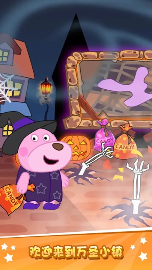 听说新建成的万圣小镇很有意思,跟着大熊一家去瞧瞧吧!先选择一个人物开启万圣小镇的冒险之旅吧!你更喜欢熊姐姐还是熊弟弟呢?根据购物清单先为自己选一身合适的万圣节装扮吧!哎呀,路上遇到了邪恶的死亡蜗牛,快去消灭它们!有好多捣乱的幽灵,赶走他们!前面怎么有南瓜在哭,去问问发生了什么。万圣小镇的冒险之旅还没有结束,还会发生什么精彩的故事呢,喊上你的小伙伴们一起来玩吧!