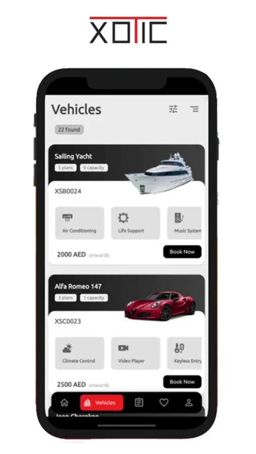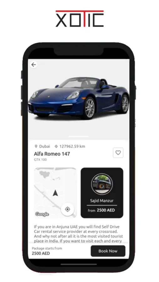 Xotic includes popular dealers with available vehicles. User can compare prices and book particular vehicle at any time.