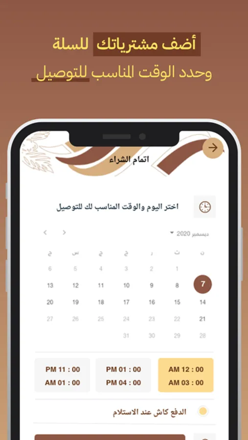 - مواعيد التوصيل ( امكانيه التحكم في اضافه مواعيد محدده للتوصيل طوال اليوم حتي يقوم العميل بالاختيار منها المواعيد التي تناسبة)