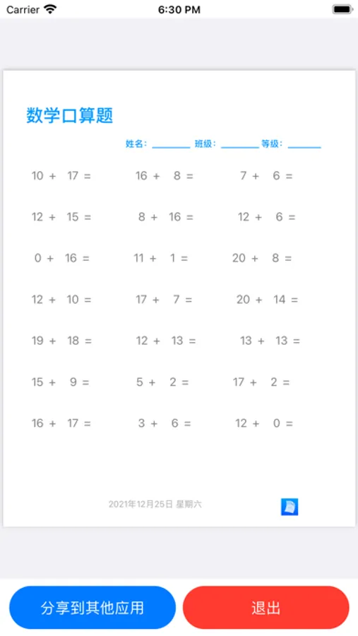 支持随机生成加减乘除练习题