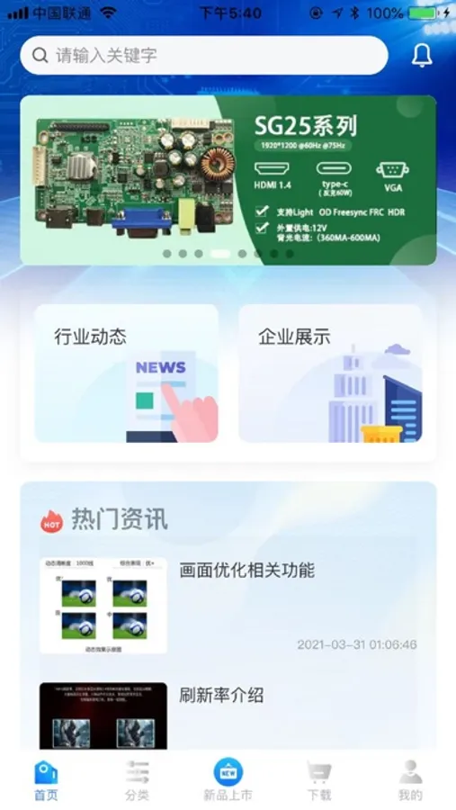 该APP提供显示行业的最新动态,提供显示行业专业知识的讲解,提供公司生产销售的所有主板资料以及固件下载(需注册会员)。显示领域以及横向拓展的前沿技术,都会第一时间在该平台发布,以便用户也能够实时掌握技术发展的态势。强大的技术支持服务,可随时为用户答疑解惑。您对显示技术所想了解的一切,尽在于此。