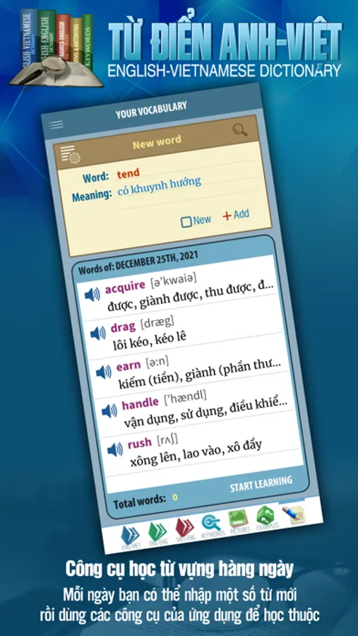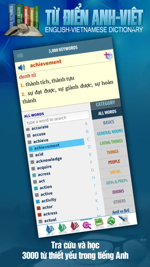 - Tra cứu và học 3000 từ thiết yếu (Keywords).