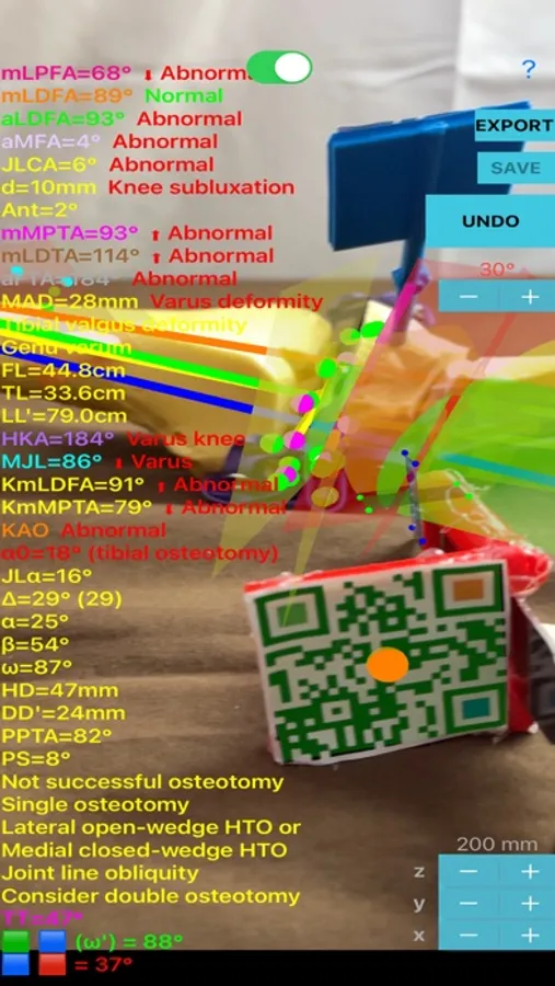 - The app works as a whole interchangable interacting unit in AR which allows to modify in instant parameters, enabling user to achieve an optimally balanced leg alignment.