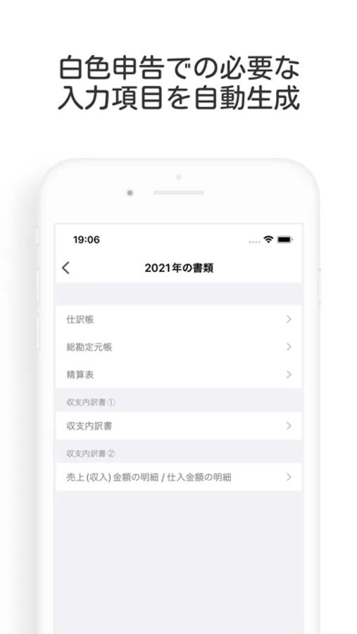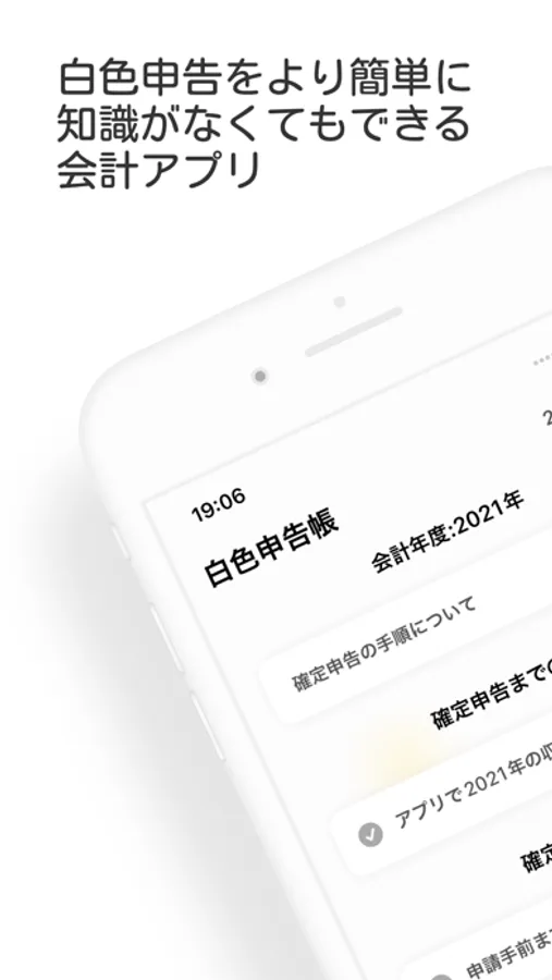 白色申告帳は、自営業や個人事業主、フリーランスの方の確定申告や、初めての確定申告で簿記の知識が少ない方などのためのかんたん会計アプリです