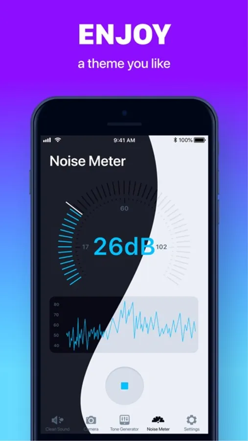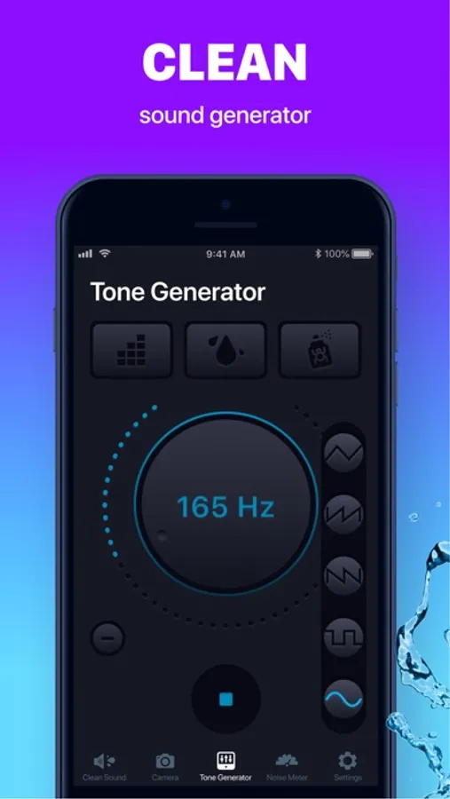 Clear Wave - Speaker app lets you create pure wave tones at frequencies from 50 Hertz to 30.000 Hertz and track environmental noise around you.