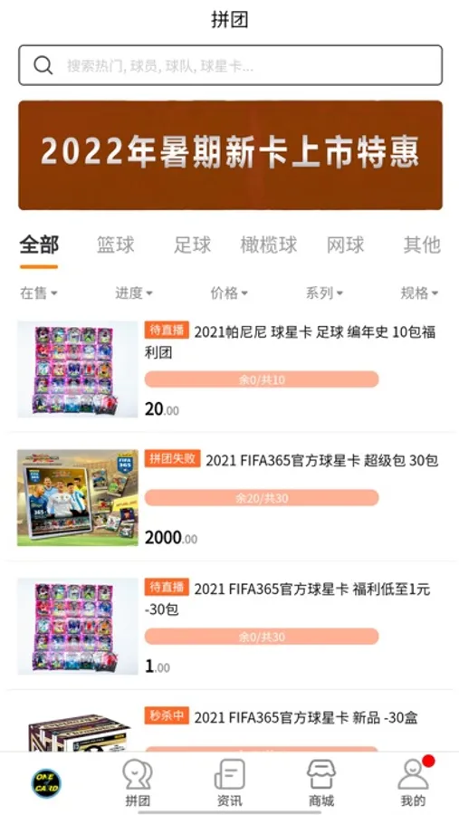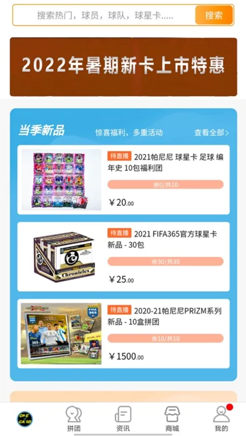 OneCard-万卡球星卡,是为广大球星卡爱好者带来优惠球星卡收集服务的一款应用。