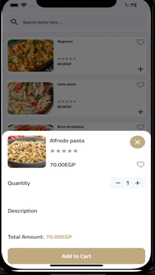 Search food item with search suggestions