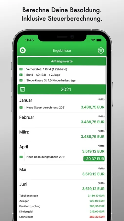 Besoldungsrechner zeigt Ihnen für jeden Monat die komplette Berechnung Ihres Gehalts an.