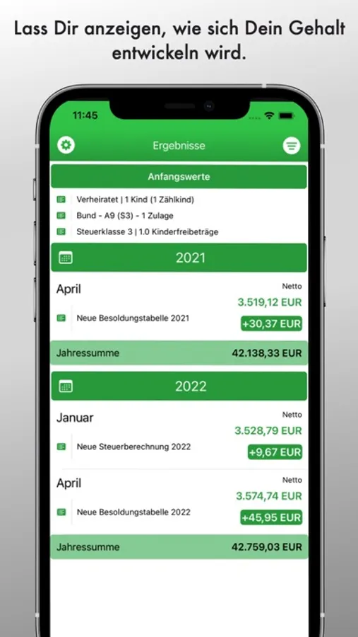 Besoldungsrechner inklusive Steuerberechnung und Prognose.