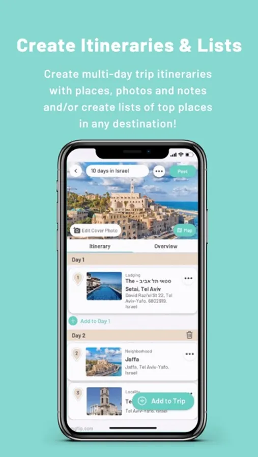 MARK YOUR JOURNEY: Add past, present, or future multi-day itineraries or lists. Jazz them up with photos, some notes, and plot your spots on a map for easy route planning.