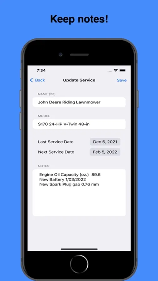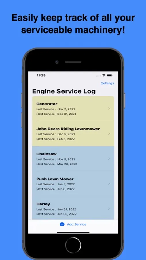 Do you have a lot of equipment that needs maintenance? Easily keep track of all of your equipments service needs. Log oil changes and keep notes of the details of your service. Use across all of your devices with iCloud. Never forget a service again.