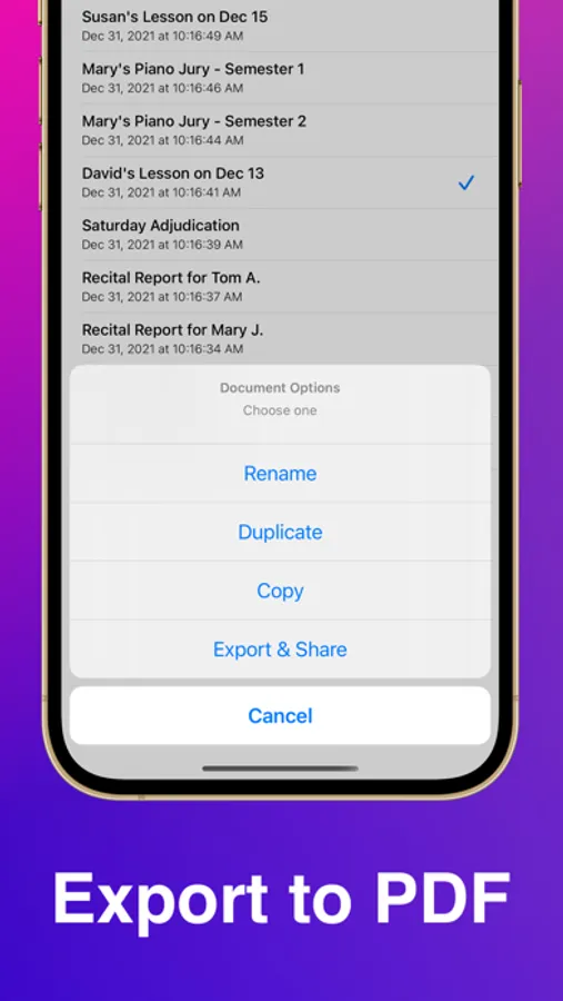 ■ Copy, save, delete, print, email, duplicate, rename, share, and export to PDF