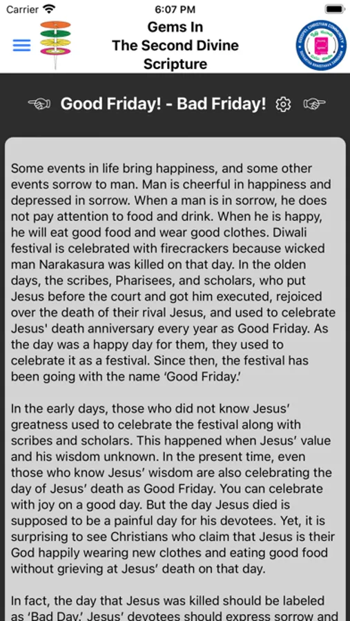 There was some history before the arrival of Jesus on earth. Even after his death, there is some history. The history written before his arrival is called the Old Testament. The history written after his arrival is named the New Testament. The Old Testament before his birth, his life in the New Testament, and how his believers propagated the Christian community after his death are important to the Christian community. The book of both Old and New Testaments is called the Holy Bible. Although the Christian Bible and the Hindu Bhagavad-Gita are intended to uplift and lead humans towards God, there are some differences. The Bhagavad-Gita does not have pre- or post-history of Krishna. It has only Krishna’s teachings. Whereas the Holy Bible contains the history before Jesus and after Jesus. The Christian preachers’ teachings contain the Old Testament words before Christ’s birth and his devotees’ propagation from the New Testament after Christ’s death. There is nothing wrong with this, but if we think thoroughly, we will come to know that only a portion of the Bible is instrumental for men to walk in God’s path. If there are many characters in a play, we like one of them more than the others. Similarly, if there are multiple episodes in a drama, we love one of them very much. Likewise, if the total Bible is considered, only the portion of the New Testament from the time Jesus Christ came upon the earth until he left is the most sacred and essential for liberation. Everyone should realize that the very essence of the Bible is the history of Jesus. Jesus’ words are like a bag of diamonds in the total Bible. All that humans must grasp in the Bible is in the Gospel of Matthew, the Gospel of Mark, the Gospel of Luke, and the Gospel of John. The divine proximity that humans need is found in these four gospels. The highest wisdom of these four gospels resides in the Gospel of John. The wisdom found in the Gospel of John is beyond the reach of human intelligence. The entire Bible has 1029 pages, but the history of Jesus is only 102 pages in the New Testament. If the Bible is divided into ten parts, one part is better than the other nine. Those who know Jesus’ value understand the true wisdom in this one part.
