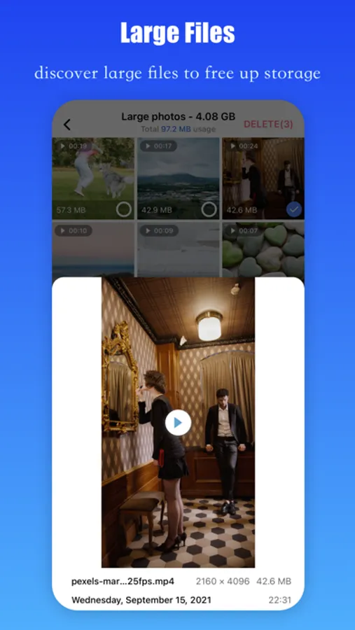 One-click cleanup of large files, screenshots, useless, and duplicate photos, freeing up a significant amount of storage space!