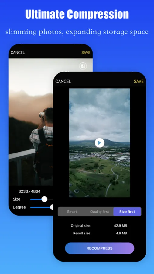 Ultimate compression for space-saving. Numerous video and photo editing tools to boost productivity!