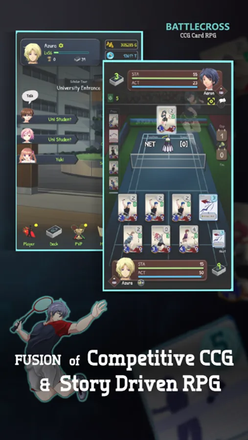 BattleCross is a badminton themed indie Card RPG, with unique gameplay of both competitive PVP CCG and offline PVE RPG. Fully developed by 2 passionate brothers, including design, coding, and music composing.