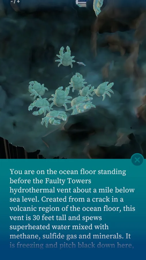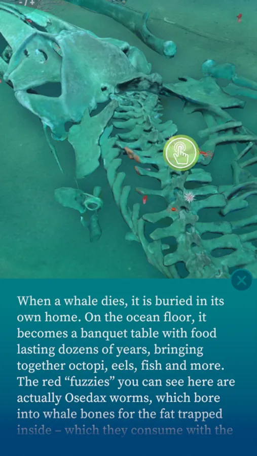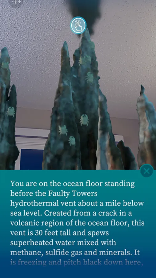 Discover the wonders of the deep sea from your room with augmented reality. The app features a hydrothermal heat vent scene and a whale fall scene to be explored. Learn about the ocean and it's ecosystem.