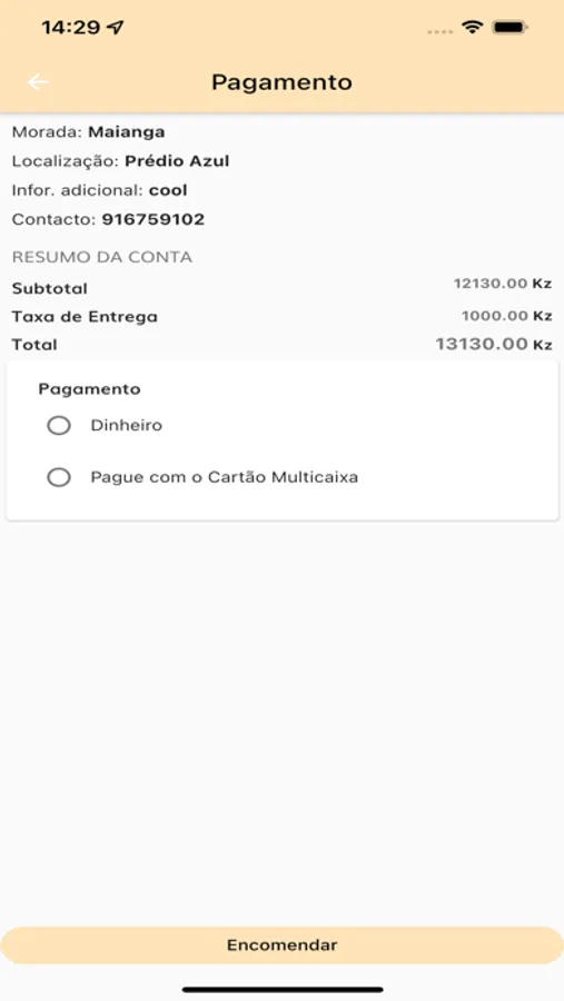 Pagamento por dinheiro ou TPA (multicaixa)
