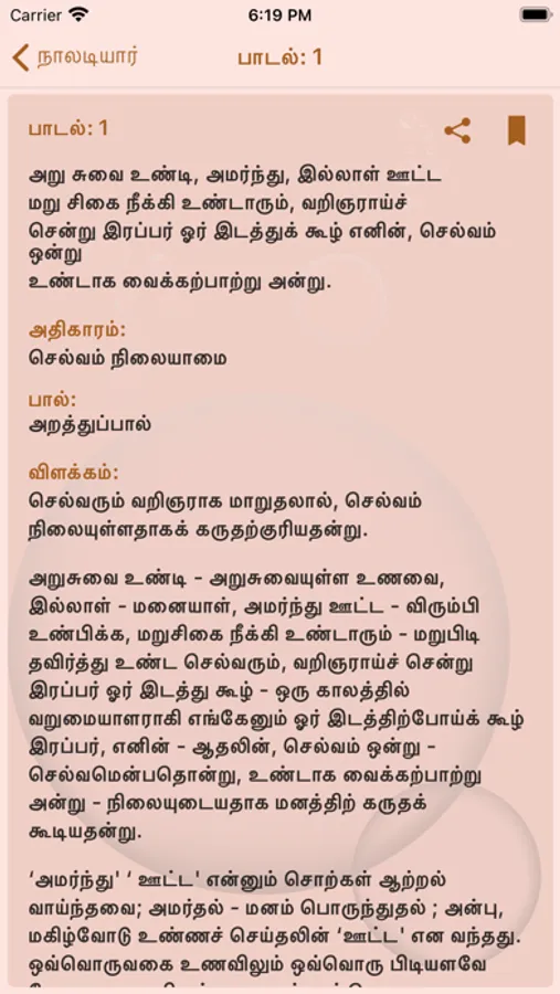 The main intention of the app is to learn from the Naladiyar and follow that in your own life and live happy.