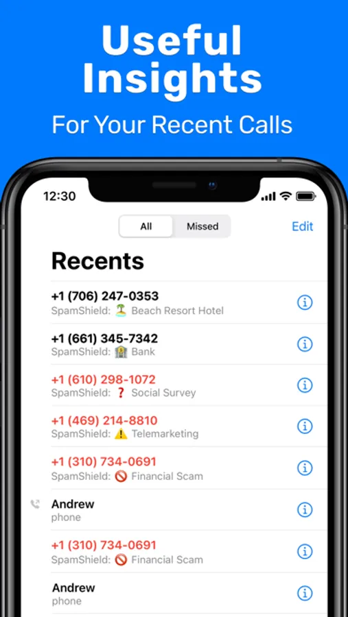 - SpamShield evaluates all incoming calls and can predict whether the call is from an important service even if the phone number is brand new!