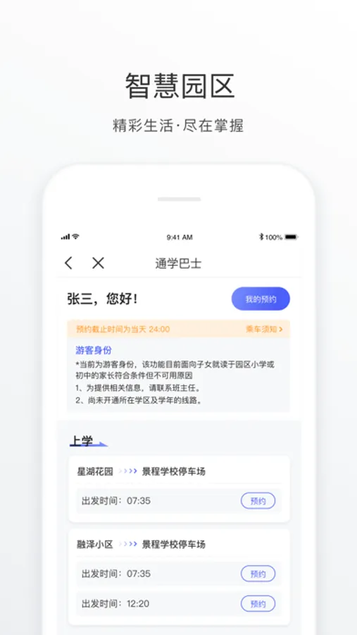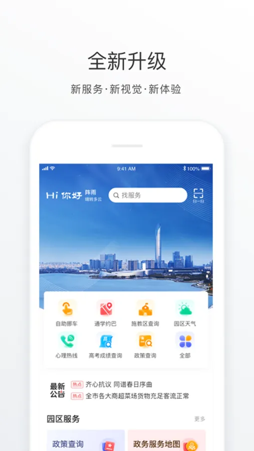 上新停车缴费、自助挪车、通学约巴、心理热线、施教区查询等服务,尽享园区生活便利